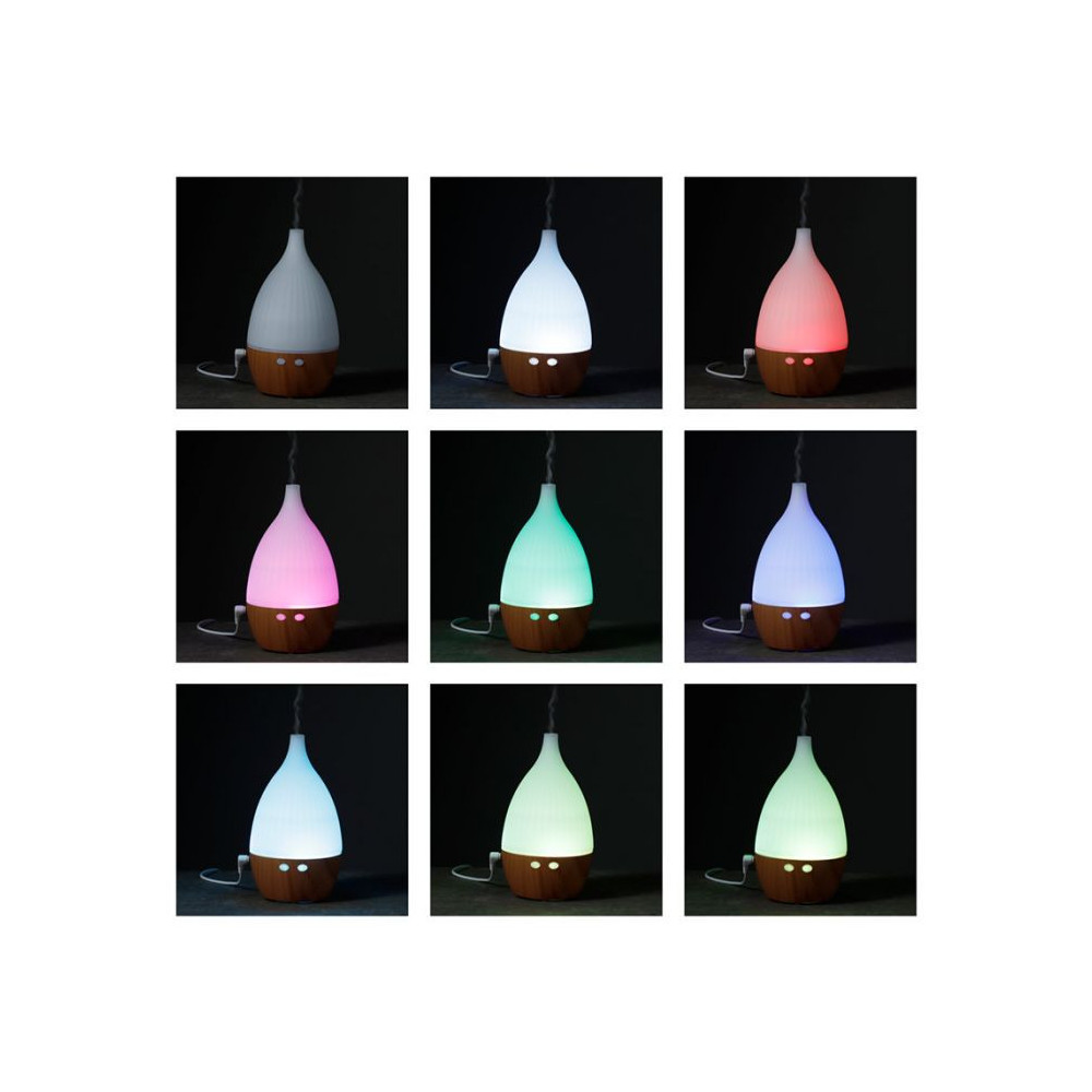 Le Diffuseur d’huiles essentielles est un diffuseur électrique qui vaporise les huiles essentielles sous forme de brume dans l’atmosphère. Non chauffées, les propriétés des huiles sont préservées et parfument agréablement votre intérieur. Ce diffuseur est aussi une jolie lampe qui peut changer de couleurs ou rester fixe en lumière blanche chaude.