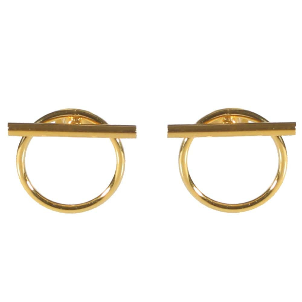 Boucles d'oreilles pendantes avec cercles et barres en acier doré.