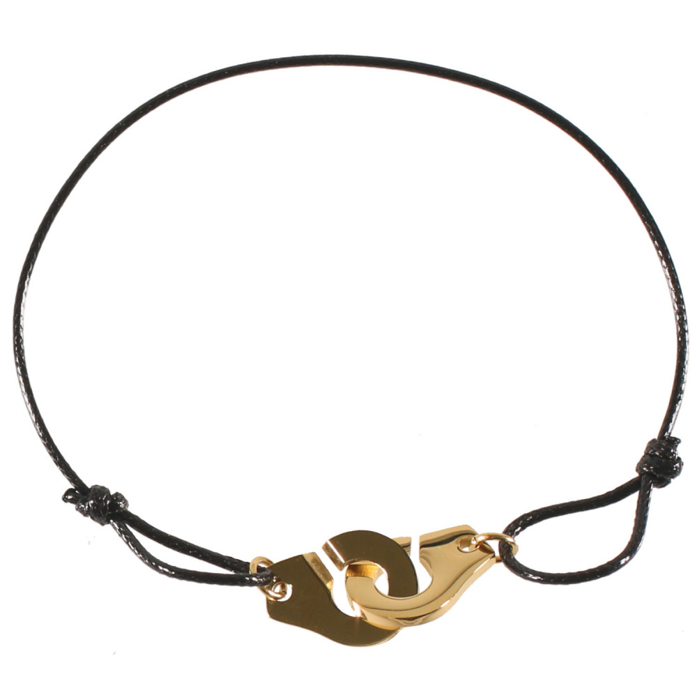 Ce bracelet est composé d'un cordon en coton de couleur noire et des menottes en acier doré.