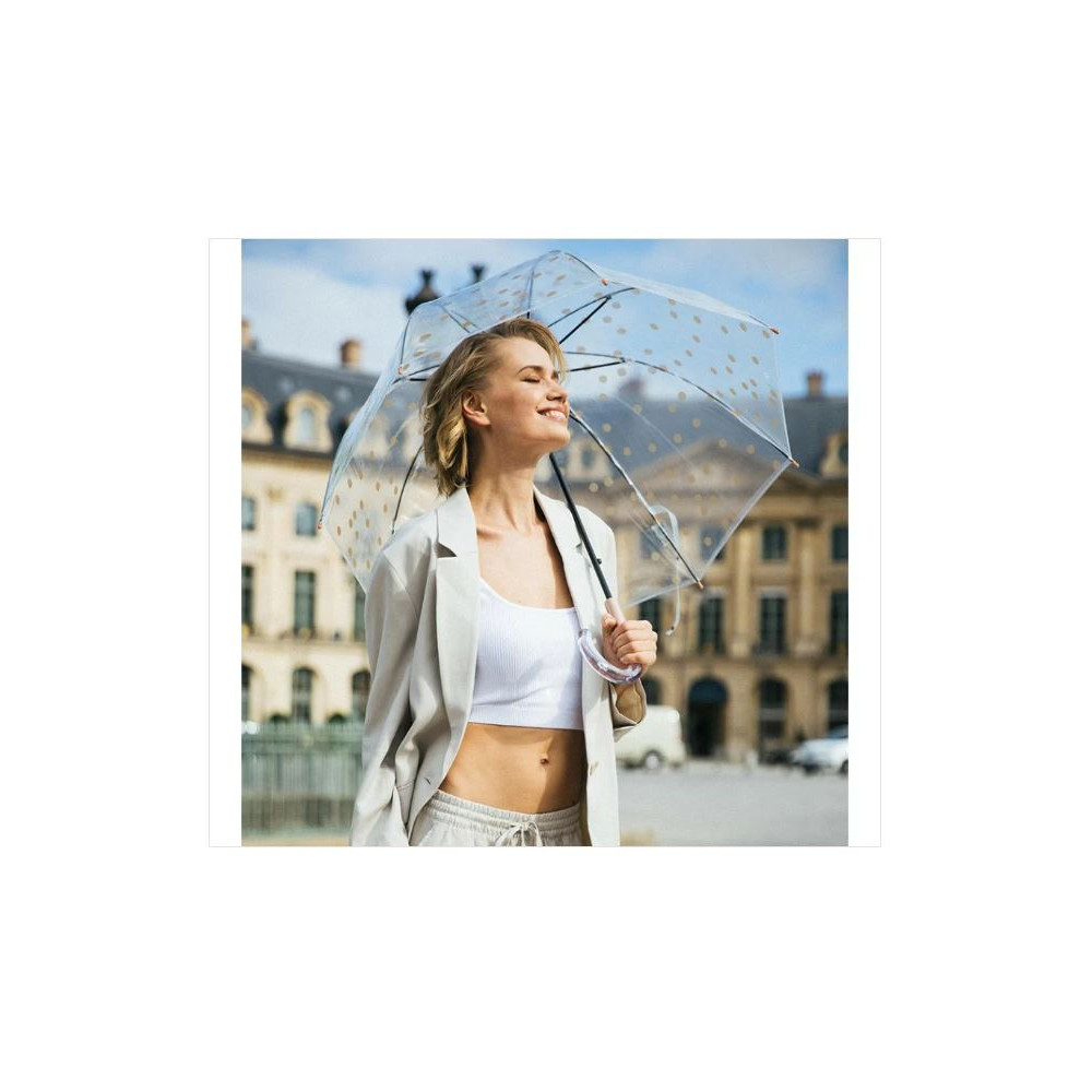Parapluie cloche transparent imprimé pois cuivrés